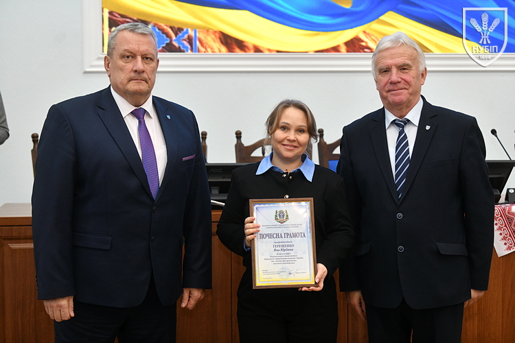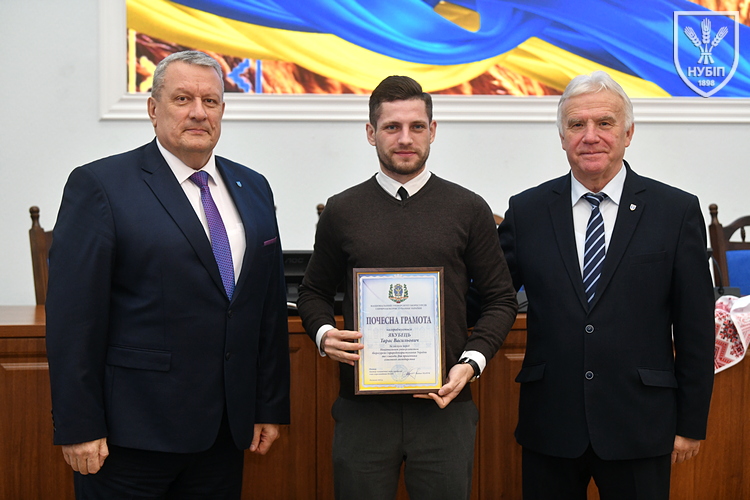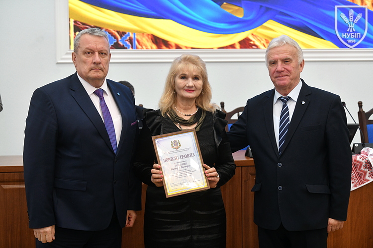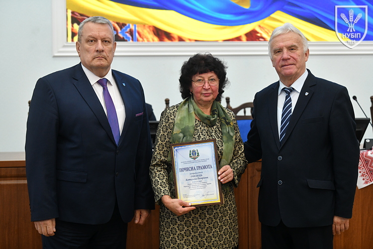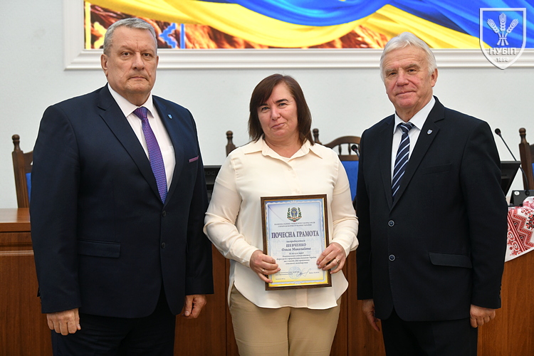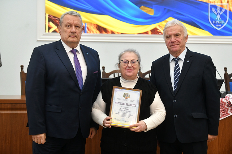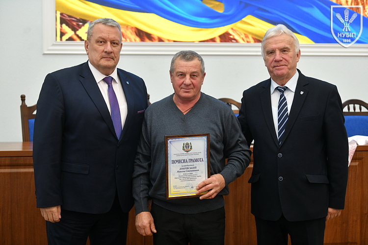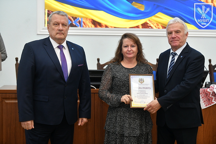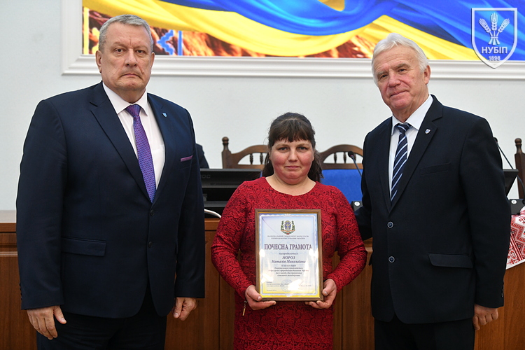 Почесною грамотою НУБіП України нагородили робітника комплексного обслуговування приміщень ВСП «Немішаївський фаховий коледж НУБіП України» Олександра ДЗЮБАНЧУКА, тракториста-машиніста сільськогосподарського виробництва ВП НУБіП України «Агрономічна дослідна станція» Миколу ДОБРІВСЬКОГО, професора кафедри біохімії Лілію КАЛАЧНЮК, директора ВП НУБіП України «НДГ «Ворзель» Сергія МАЙСТРЕНКА, професора кафедри технологій у тваринництві Вікторію МЕЛЬНИК, оператора машинного доїння ВП НУБіП України «Агрономічна дослідна станція» Наталію МОРОЗ, завідувача складом паливно-мастильних матеріалів ВП НУБіП України «Великоснітинське НДГ ім. О.В. Музиченка» Катерину ОБЕЛЕЦЬ, завідувача кафедри транспортних технологій і засобів у АПК Лілію САВЧЕНКО, водія автотранспортних засобів ВП НУБіП України «Великоснітинське НДГ ім. О.В. Музиченка» Павла СТЕЦЬКОГО, доцента кафедри екології агросфери та екологічного контролю Віту СТРОКАЛЬ, доцента кафедри садівництва Яну ТЕРЕЩЕНКО, доцента кафедри годівлі тварин та технології кормів ім. П.Д. Пшеничного Дмитра УМАНЦЯ, машиніста дробильних установок ВП НУБіП України «Великоснітинське НДГ ім. О.В. Музиченка» Вадима ХАВЕЛЯ, провідного бухгалтера ВП НУБіП України «Агрономічна дослідна станція» Ольгу ШЕВЧЕНКО, старшого викладача кафедри прикладної біології, розведення та генетики тварин Тараса ЯКУБЦЯ.