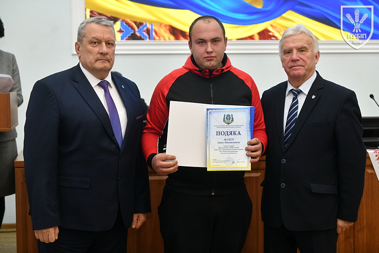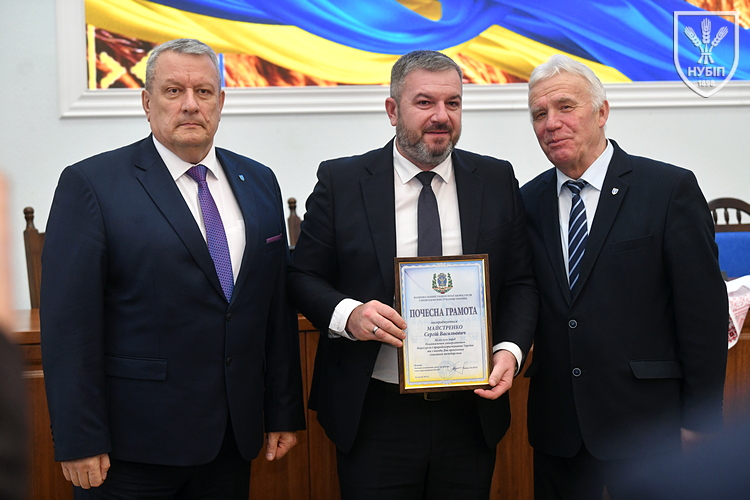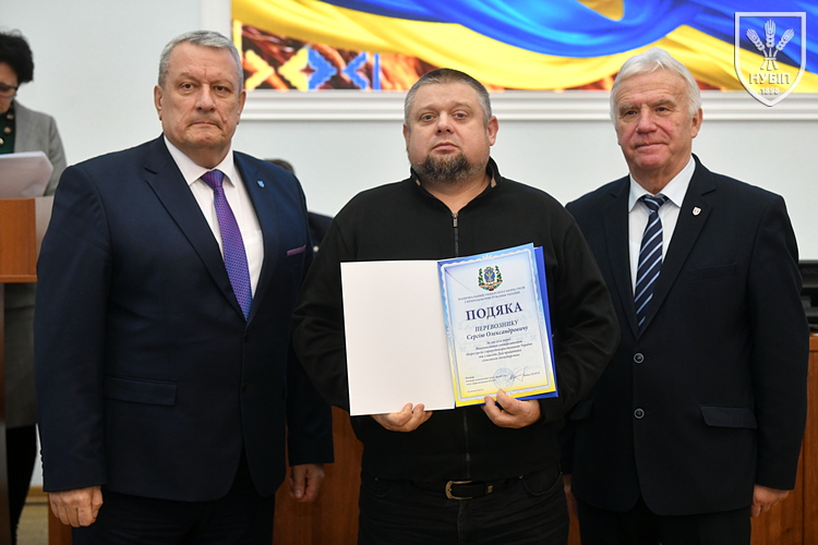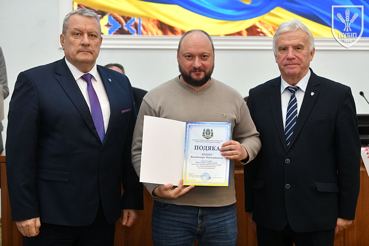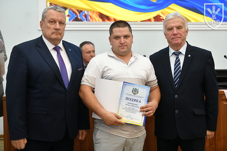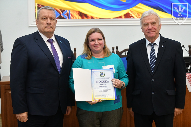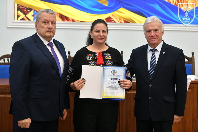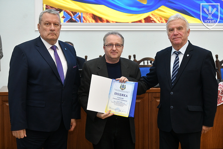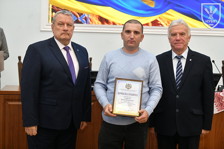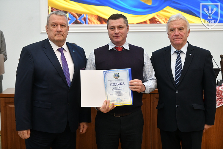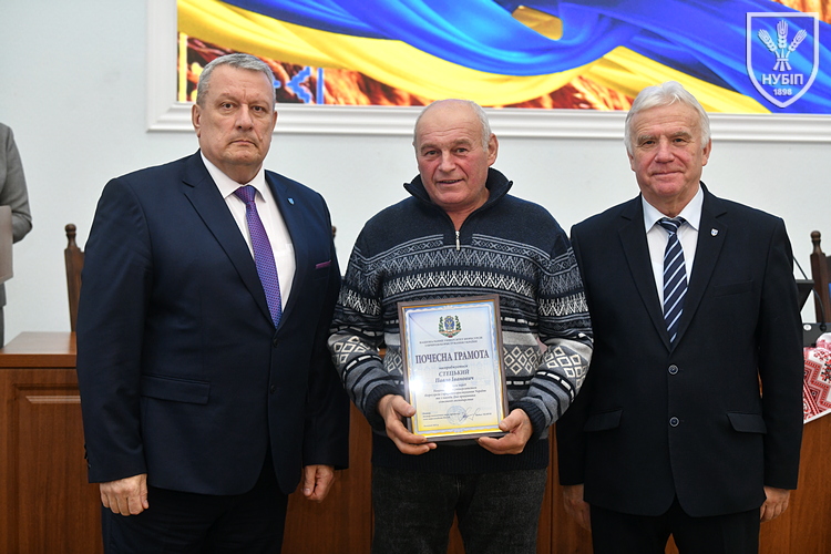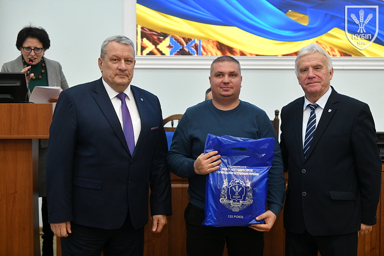 Цінним подарунком НУБіП України нагородили завідувача складом ВП НУБіП України «НДГ «Ворзель» Василя ГОНЧАРУКА, завідувача лабораторією ВСП «Немішаївський фаховий коледж НУБіП України» Андрія КУРЯТУ, головного зоотехніка ВП НУБіП України «Агрономічна дослідна станція» Юлію ЛЮБІНЕЦЬКУ, завідувача лабораторією переробки сільськогосподарської продукції ВП НУБіП України «Ніжинський агротехнічний інститут» Дмитра ПУНТУСА, заступника директора з технологій ВП НУБіП України «Великоснітинське НДГ ім. О.В. Музиченка» Михайла ШЕВЧУКА.