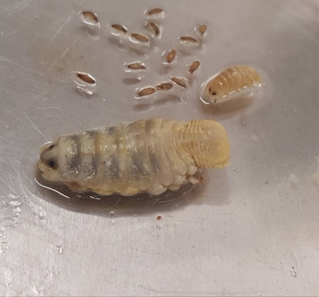 Саме так, зовсім випадково аспірант кафедри аквакультури Богдан Коваленко виявив у імпортованої охолодженої риби сибас кілька екземплярів невідомого паразита. Його ідентифікація та вивчення стали викликом для співробітників кафедри аквакультури. Так, після дослідження його морфології, уточнення окремих деталей тілобудови під мікроскопом, нами було встановлено, що даний паразит має назву язикова мокриця (Cymothoa exigua) (рис. 1).