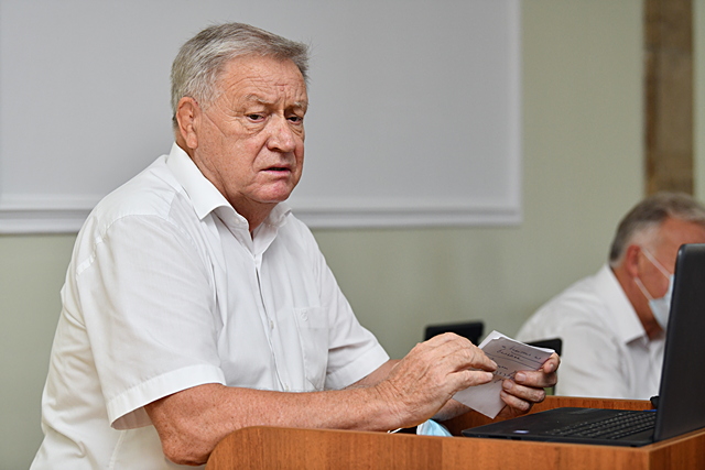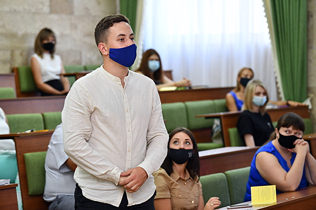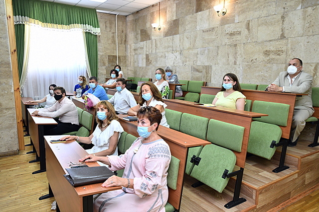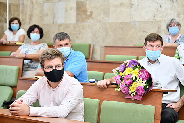 Ректор розпочав представлення з актуального питання вступної кампанії 2020 відзначивши хорошу роботу колективу факультету, про що свідчать покращені показники порівняно із минулим роком та ряді характеристик ефективної діяльності факультету. Поряд із зазначеним наголосив на тому, що необхідно звернути увагу на якість освітнього процесу, престижі спеціальності та важливості проведення профорієнтаційної роботи. В заключенні ректор нагадав, про особливості освітнього процесу в умовах адаптивного карантину та зосередив увагу на продовженні та удосконаленні роботи з електронними навчальними курсами. Після чого слово було надано здобувачу.