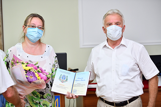На завершення конференції трудового колективу, ректор вручив диплом заслуженого працівника НУБіП майстру виробничого навчання кафедри процесів і обладнання переробки продукції АПК Людмилі Ільяковій та Почесну грамоту Міністерства освіти і науки України доценту кафедри технології м'ясних, рибних та морепродуктів Наталії Слободянюк.