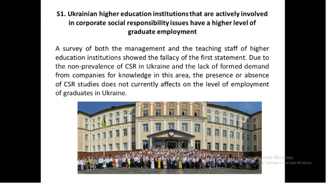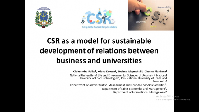 Друга секція "Bioeconomy, Resourse Management and Suistainable Development" була забезпечена участю доцента кафедри Олександри Ралко з презентацією на тему "CSR as a Model for Sustainable Development of Relations between Business and Universities".
