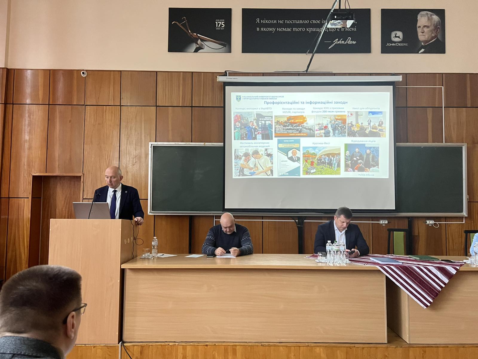 В обговоренні звіту також виступили завідувач кафедри охорони праці та біотехнічних систем у тваринництві професор Василь ХМЕЛЬОВСЬКИЙ, завідувач кафедри тракторів і автомобілів професор Євген КАЛІНІН, доцент кафедри сільськогосподарських машин і системотехніки ім. акад. П.М. Василенка Михайло ВОЛЯНСЬКИЙ та доцент кафедри транспортних технологій і засобів у АПК Олександр ДЬОМІН.