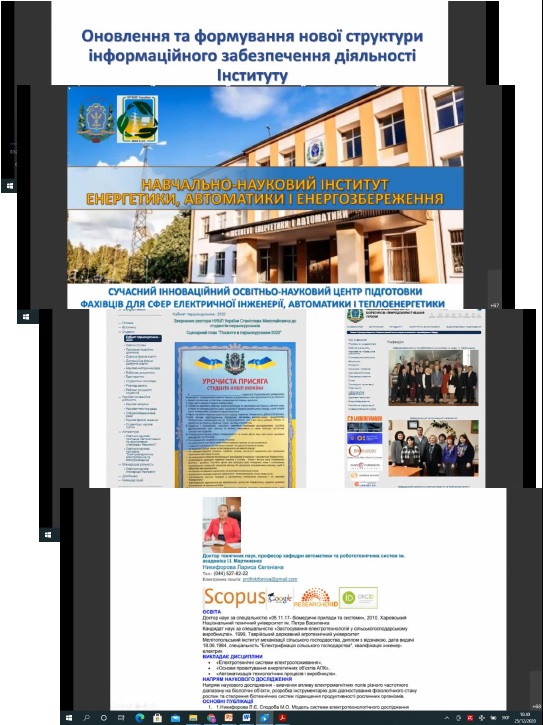 Окремою, але відповідальною і вагомою сферою діяльності фахівців інституту є науковий та практичний супровід управління енергозабезпеченням для зменшення видатків бюджету університету на комунальні платежі. Наразі до технічної ради з енергозбереження поданий розроблений в інституті проєкт Комплексної науково-технічної програми управління енергоефективністю в НУБіП України на 2021-2025 роки та план заходів до неї на 2021 рік.