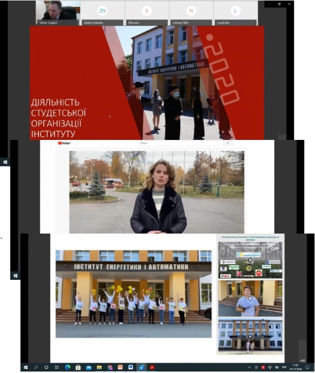 Не обійшов доповідач увагою студентське життя, діяльність самоврядування та організацію дозвілля. Як відзначив Віктор Каплун, креативні та цікаві матеріали були створені студентськими активістами для реклами та поширення інформації про спеціальності та інститут у медійному просторі. Разом із студентським самоврядуванням в інституті створена і функціонує профорієнтаційна платформа для вступників шкіл та коледжів.