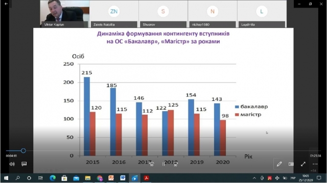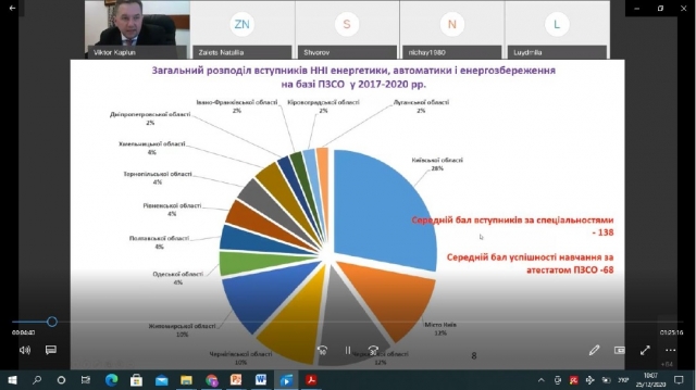 Значну частину доповіді директор приділив аналізу формування контингенту студентів, результативності вступної кампанії та окресленню нових завдання для стабілізації кількості вступників на спеціальності 141 «Електроенергетика, електротехніка та електромеханіка», 144 «Теплоенергетика», 151 «Автоматизація та комп'ютерно-інтегровані технології».