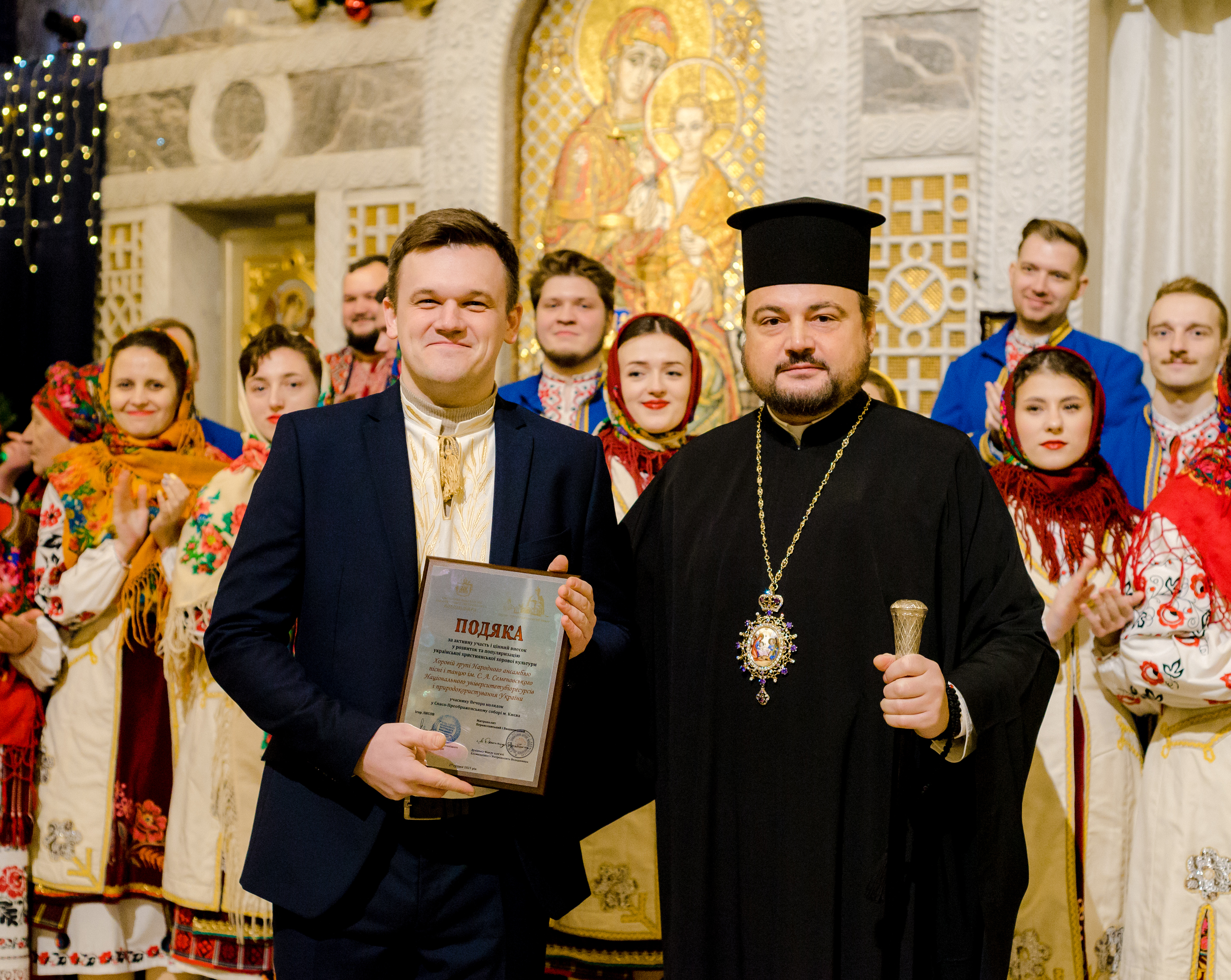Хорова група народного ансамблю пісні і танцю «Колос» взяла участь у щорічному фестивалі «Вечір колядок», що відбувся у Спасо‑Преображенському соборі (м. Київ). Лише 15 співаків змогли гідно відстоювали честь колективу (такі обмеження поставили організаторами) з новою програмою на незвичній для себе сцені, тож у короткі терміни під керівництвом старшого викладача кафедри культурології доктора мистецтва Тараса Кушніра хористи підготували програму з 5‑ти колядок: «Нова радість стала» (українська народна обробці Кирила Стеценка); «Ой, з неба-неба» (автентична коляда в опрацюванні Тараса Кушніра); «Нічка та ясная» (слова і музика Вололимира Богачука); «Зірка яскрава в небі тривожному» (в обробці Тараса Кушніра); «За вікном чорна хмара в’ється» (українська народна в обробці Олександра Стадника).