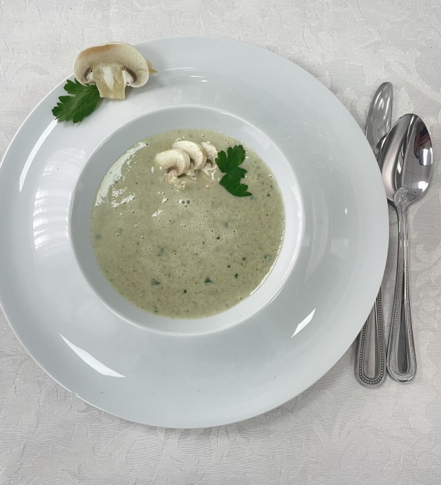 Однією із страв було обрано – грибний суп-пюре. Як відомо, суп-пюре — це суп, у якому гарнір знаходиться у протертому стані. Ці супи мають однорідну консистенцію, тому їх використовують у дитячому та лікувальному харчуванні, так само він дозволяє урізноманітнити раціон літніх людей, тому що це страва легко засвоюється і є досить калорійною. А додавання грибів надає пікантний та вишуканий смак.