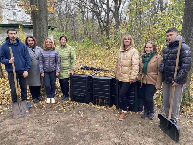 На факультеті захисту рослин, біотехнологій та екології, цими днями, за ініціативи декана факультету Юлії Коломієць, викладачів кафедри екології агросфери та екологічного контролю, а також студентів спеціальності 101 «Екологія» було встановлено контейнери для компостування опалого листя. За своєю суттю компостування фактично є природним процесом розкладання листя, трави та інших органічних відходів за участі кисню, ґрунтових бактерій, а також життєдіяльності каліфорнійского черв’яка. У результаті вірного дотримання технології компостування отримаємо компост — збагачене на органічні речовини добриво, яке покращує ґрунт на вміст поживних речовин та корисні мікроорганізмами без збудників хвороб та насіння бур’янів.