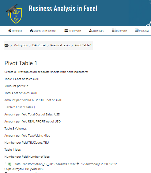 Консультація для здобувачів вищої освіти ОС «Бакалавр» спеціальності «Менеджмент», що опановують курс Business Analysis in Excel з поглибленим вивченням іноземної мови.