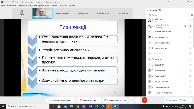 Перед початком другого семестру 2020-2021 навчального року деканатом факультету ветеринарної медицини було отримано від завідувачів кафедр посилання на проведення викладачами онлайн-лекцій з дисциплін, які читаються згідно розкладу для студентів з використанням платформ Cisco Webex, Zoom, Google Meet. Також перевірено зарахування студентів на електронні навчальні курси Навчально-інформаційного порталу НУБіП України Elearn, де дистанційно проводяться практичні, семінарські та лабораторні заняття з дисциплін.
