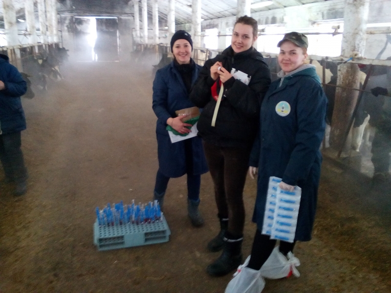 12 лютого магістри та студенти 4 курсу факультету ветеринарної медицини разом з лікарями ветеринарної медицини ВП НУБіП України «Великоснітинське навчально-дослідне господарство ім. О.В. Музиченка» Конончуком Олександром та Калінським Дмитром провели відбір проб крові поголів’я ВРХ у НДГ для дослідження на лейкоз.