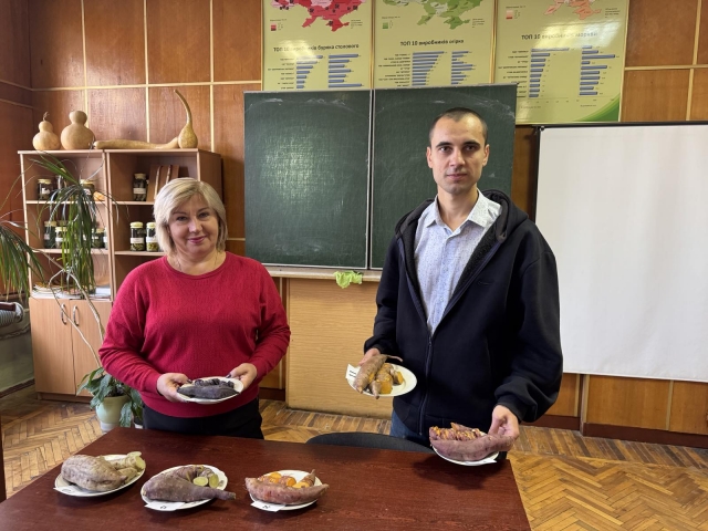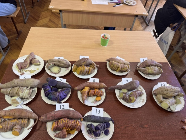 18 жовтня студенти 3 курсу та 2 курсу (с.к.) агробіологічного факультету спеціальності 203 «Садівництво, плодоовочівництво та виноградарство» провели цікаве, смачне, а головне корисне та пізнавальне практичне заняття з дисципліни «Овочівництво». Була проведена дегустація бульб 13 сортів батату для визначення їхньої смакової оцінки. Кореневі бульби всіх варіантів відварювали 20 хвилин. Загальна дегустаційна оцінка в балах подавалася, як сумарна оцінка консистенції, смаку та текстури варених кореневих бульб. Смакові якості бульб оцінювали за дев’ятибальною шкалою та записувались в дегустаційні листки. Студенти з цікавістю оцінювали основні ознаки, що дозволяють комплексно визначити якість та смакові властивості бульб, а саме консистенцію м’якуша, розварюваність, смак та вологість. Після цього сорт батату отримував сумарну оцінку та середню оцінку всіх дегустаторів.