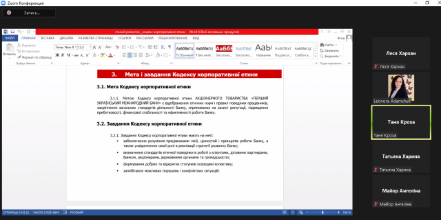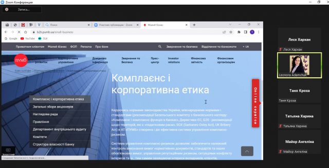 Тетяна Кроха, здобувачка ОС «Магістр» за освітньою програмою «Якість, стандартизація та сертифікація», розповіла про діючий Кодекс Корпоративної Етики банку ПУМБ зі сторони співробітника. Зокрема про запобігання виникнення конфліктних ситуацій та дотримання законодавства у сучасних складних умовах під час війни.