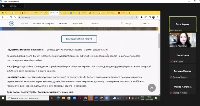 − можливість студентів в доброзичливій формі висловлюватися відносно виконаних робіт одногрупників, їх активного обговорення із застосуванням власної оцінки, бачення; також це дає можливість виговоритися та висловити свою позицію, що дозволяє самоствердитися у часи окупаційної війни;