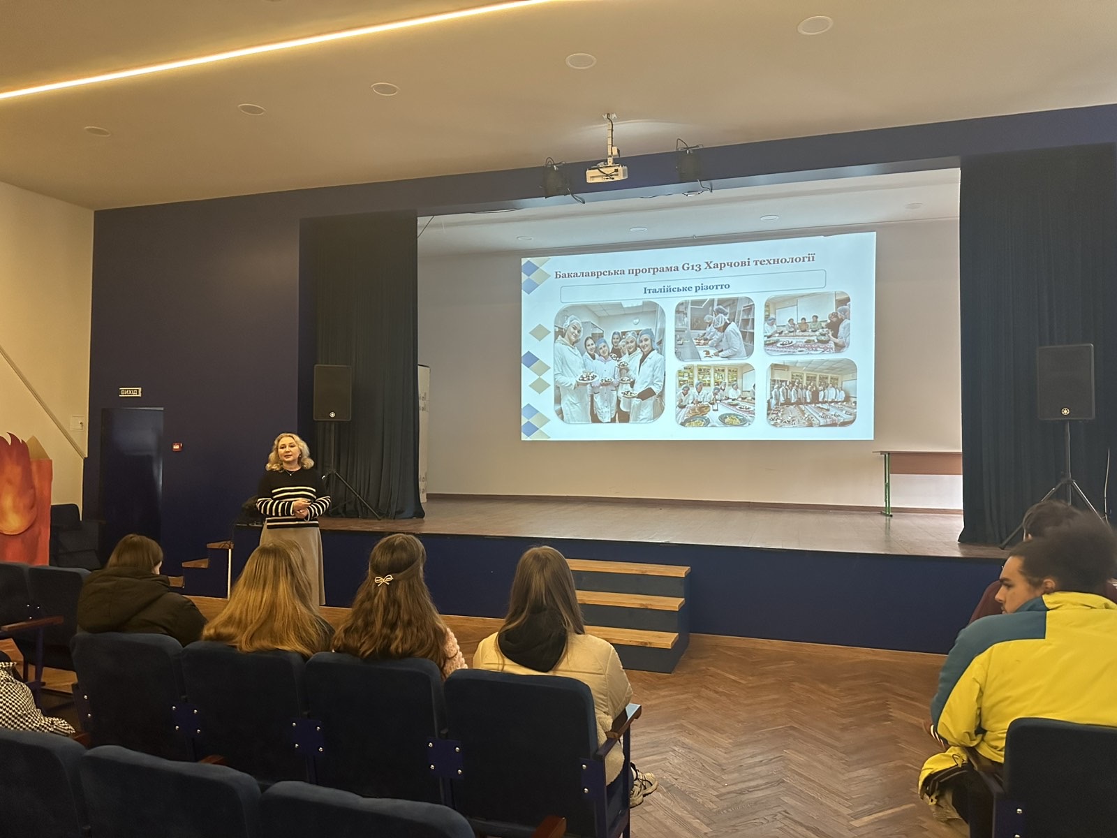 Ще один надзвичайно перспективний напрямок презентували Альона АЛЬТАНОВА та Дмитро САВЧУК з факультету харчових наук, нутриціології та управління якістю. Вони відкрили для учнів світ сучасних фуд-технологій. Ліцеїсти дізналися, чому нутриціологія б'є рекорди за популярністю, як розробляються інноваційні продукти та чому експерти з управління якістю завжди матимуть престижну роботу на українському та європейському ринках.