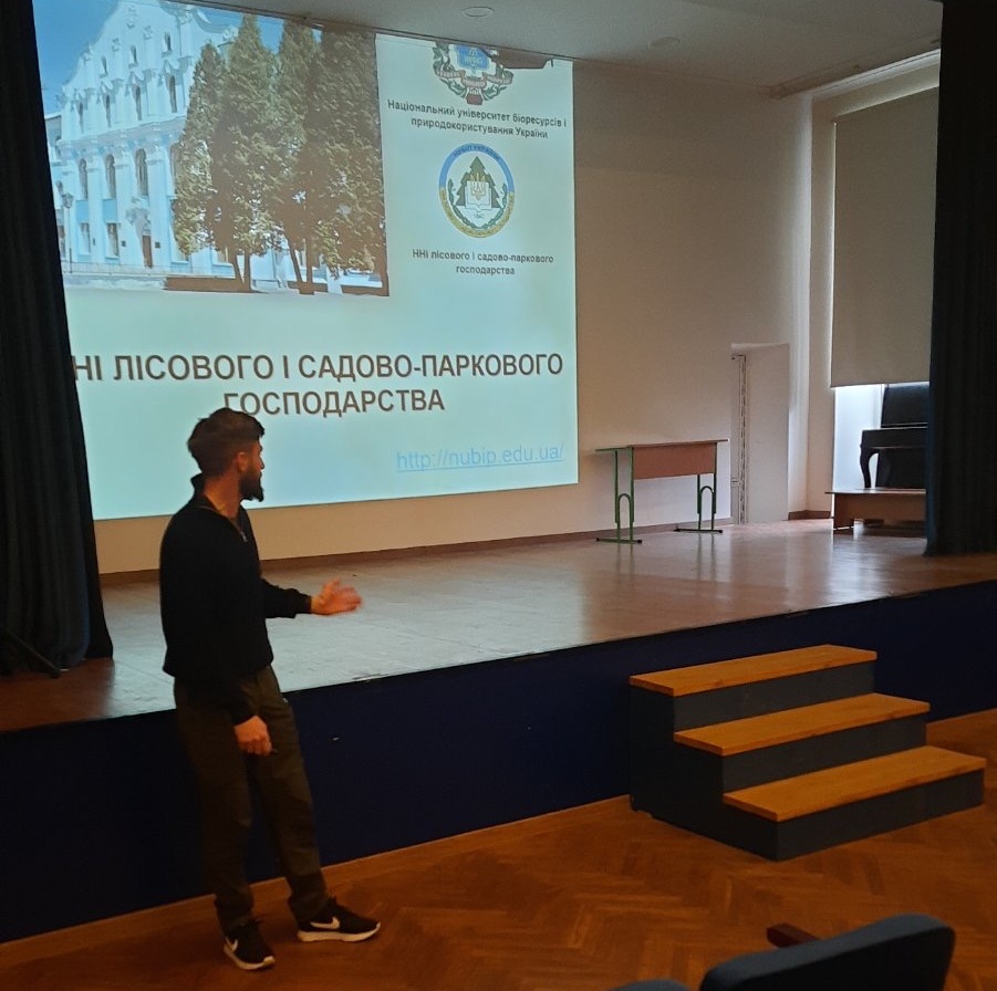 Про те, як стати архітектором зеленого майбутнього країни, розповів асистент ННІ лісового і садово-паркового господарства Олександр БАБИН. Він показав, що сучасне лісівництво та ландшафтний дизайн — це захоплива сфера на перетині екології, інновацій та мистецтва. Відновлення постраждалих екосистем та створення комфортних зелених просторів у містах сьогодні потребують свіжих ідей, тому фахівці цього напрямку цінуються як ніколи.