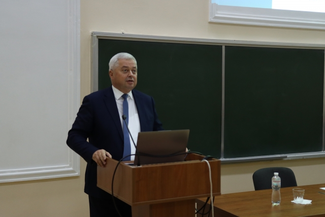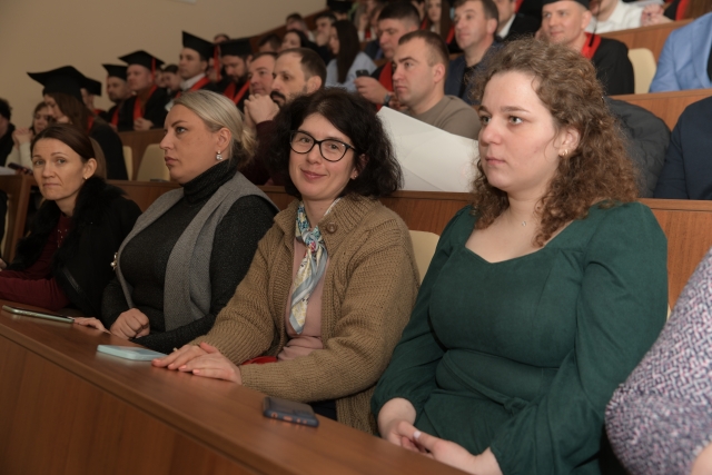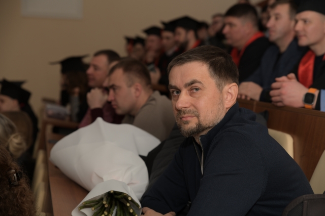 Від адміністрації університету на урочистосятх був присутній проректор з науково-педагогічної роботи та розвитку, доктор економічних наук, професор, академік Сергій Кваша. Сергій Миколайович привітав випускників, побажавши нових досягнень у майбутньому, здобутків та реалізації набутих компетентностей. Також проректор звернувся до штучного інтелекту, запитавши побажання для дипломованих магістрів.