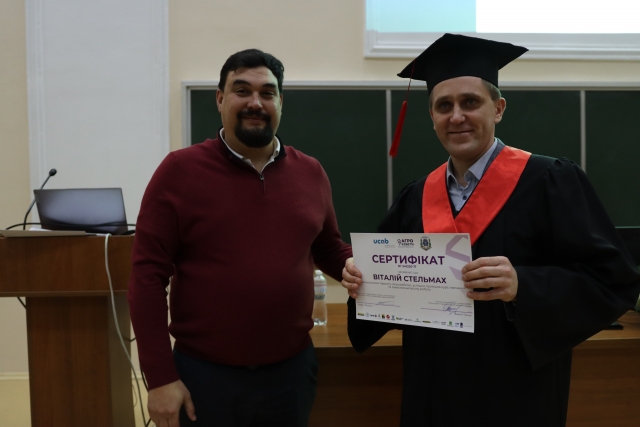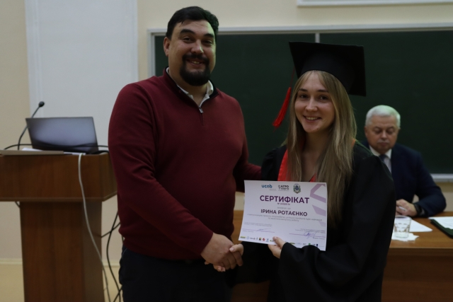 Олег Хоменко вручив випускникам освітньої програми «Адміінстративний менеджмент» проекту «Агрокебети» сертифікати за підписом Алекса Ліссітси, голови Наглядової Ради проєкту «Агрокебети», президента УКАБ та Вадима Ткачука, ректора НУБіП України.