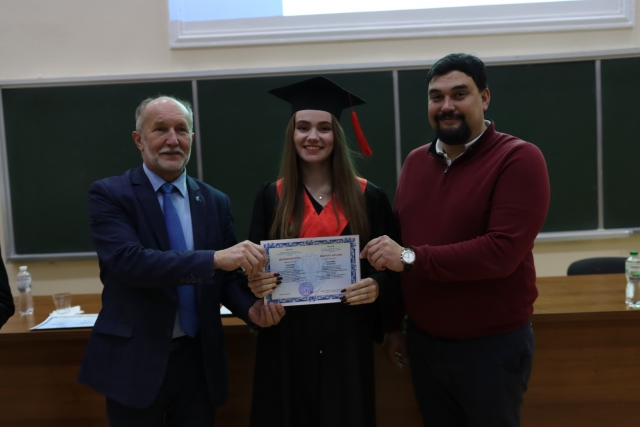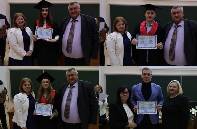 До вітань приєднались префесор, член-кореспондент НАН України Лідія Шинкарук, завідуючі кафедр: доцент Олена Ковтун, професор Тетяна Балановська, професори Валерій Бондаренко та Микола Талавиря, які висловили гордість за своїх студентів, що продемонстрували не лише академічну наполегливість, але й активну участь у дослідницьких проєктах, міжнародних програмах обміну та волонтерських ініціативах.