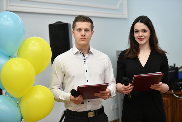 Представники студентської організації факультету Олександра Козачук та Ростислав Коваленко привітавши випускників виконали музичну композицію з інструментальним супроводом. Також студенти факультету запропонували випускникам екскурс студентськими роками у вигляді фото та відео спогадів ключових моментів навчання і студентського життя.