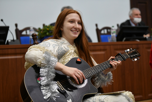 Від студентів факультету аграрного менеджменту з музичним вітанням виступила Вікторія Федоренко.