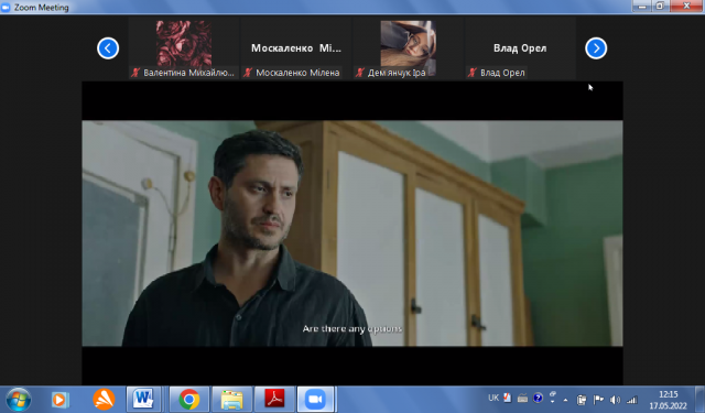 Доцент кафедри, д.політ.н. Людмила Харченко презентувала аудиторії фільм запрошеного гостя – режисера Нарімана Алієва «Додому», світова прем’єра якого відбулася 22 травня 2019 року на 72 Каннському міжнародному кінофестивалі. Цей фільм займає 59-60 позицію серед 100 найкращих фільмів в історії українського кіно. Слід зазначити, що п.Людмила особисто звернулася до режисера з проханням надати можливість переглянути фільм за офіційною ліцензією і запросила самого режисера, Нарімана Алієва, виступити перед студентсько-викладацькою аудиторією.