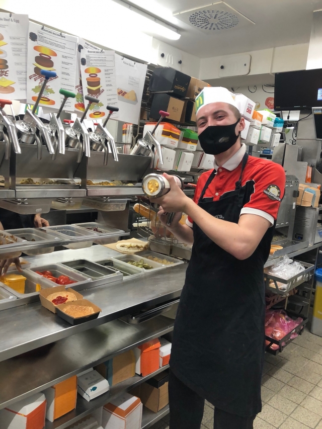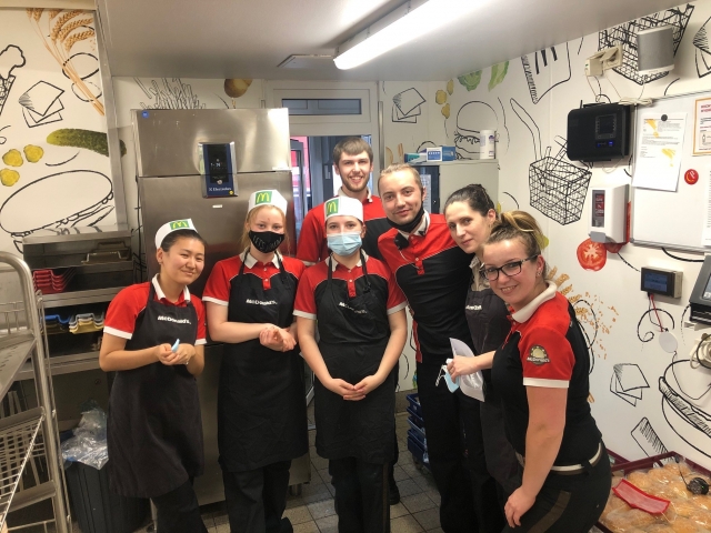 Виробнича практика проходила в найбільший у світі мережі закладів швидкого харчування МакДональдз. На підприємстві були студенти не тільки з України, але й з Киргизстану, Ірану та самої Німеччини. А також працівники зі Словаччини, Угорщини й, звісно, з Німеччини. Нас зустріли з радістю, весь час проявляли зацікавленість, бажання навчити, розказати про своє життя, дізнатися про наше навчання, а також поспілкуватися на теми спільних інтересів. Це була чудова можливість отримати не тільки професійні навички, але й підвищити свій рівень володіння іноземною мовою.