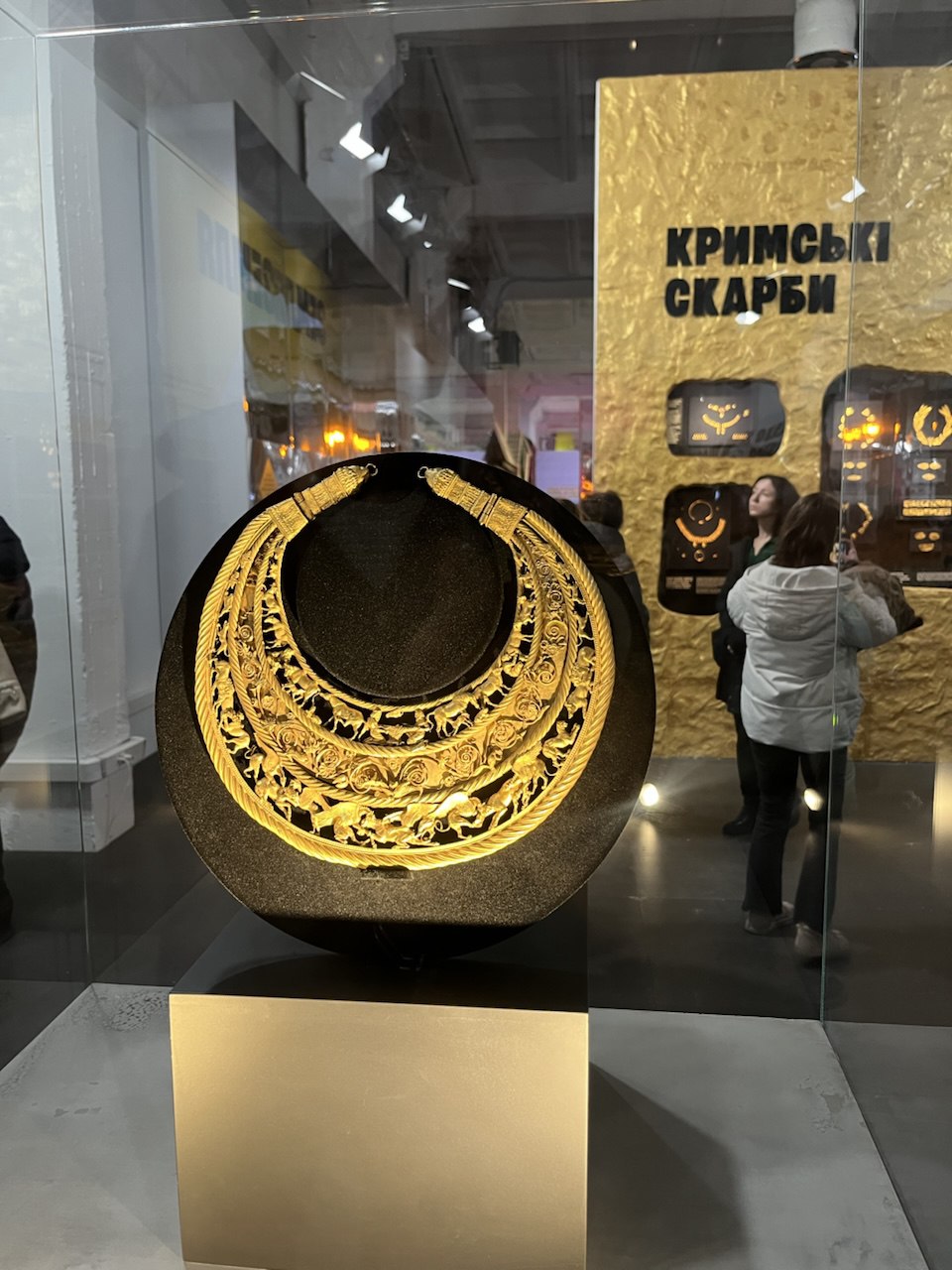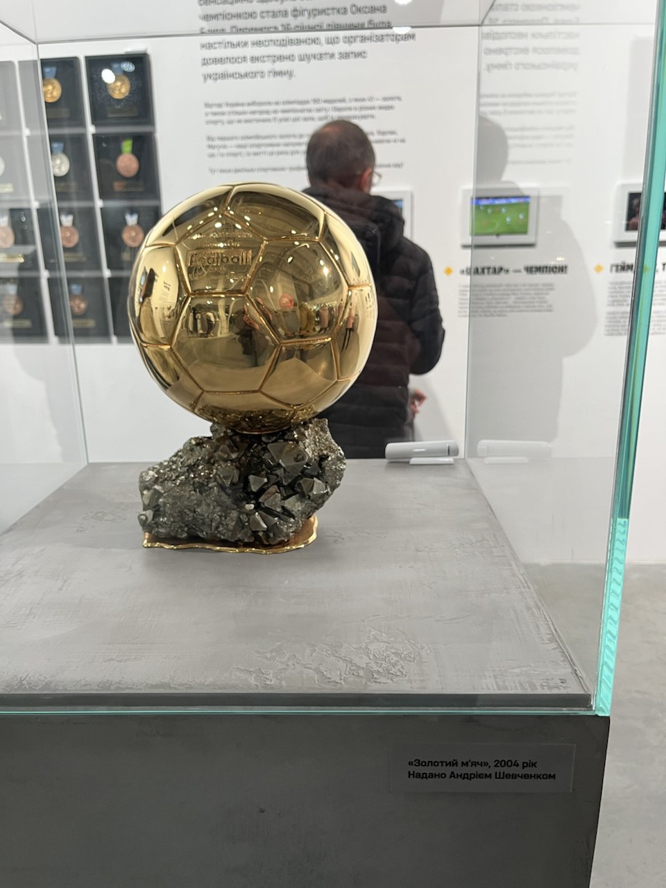 Не менше захоплення викликав зал із відзнаками часів війни — ці експонати немов підсвічували сучасні перемоги України: тут і Оскар, і кришталеві трофеї Євробачення, і чемпіонський пояс Усика, і рапіра Харлан, і кубок UEFA, і Золотий м’яч Шевченка.