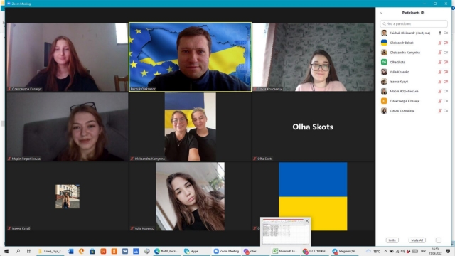 14 вересня 2022 р. доцент кафедри адміністративного менеджменту та ЗЕД Олександр Файчук у форматі Zoom-конференції провів планову зустріч зі своїми студентами. Перш за все, наставник поцікавився станом їх здоров’я. Більше того, він нагадав підопічним правила індивідуального поводження у разі отримання сигналу «Повітряна тривога» і просив їх за інших безпечних умов максимально бути присутніми на заняттях та виконувати вчасно всі поставлені викладачем задачі.