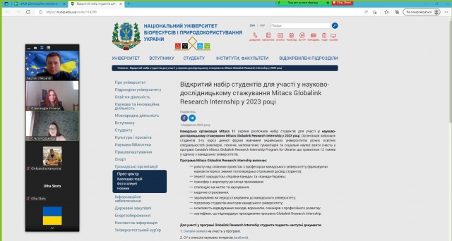 Також під час зустрічі студентам була надана інформація про можливість їх участі у 2023 р. в науково-дослідному стажуванні в одному із канадських вишів за умови успішного проходження відбору за програмою стажування Mitacs Globalink Research Internship.