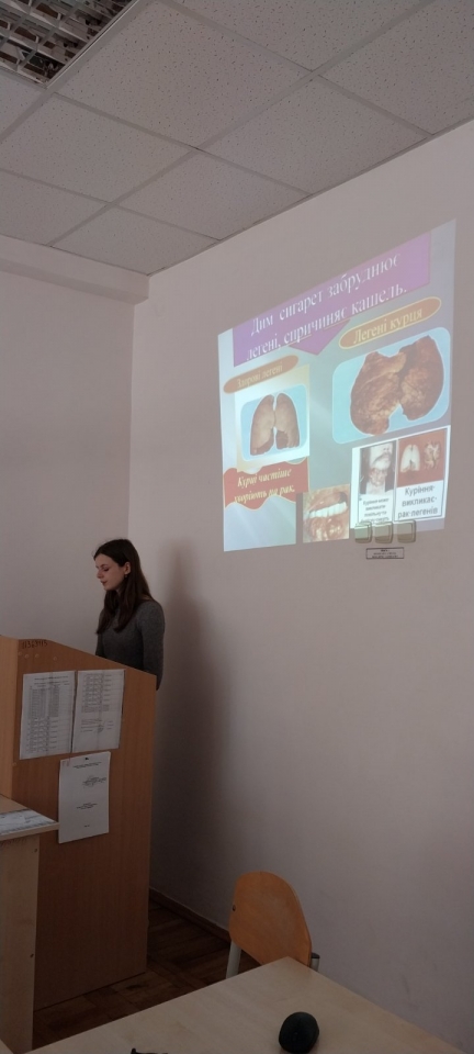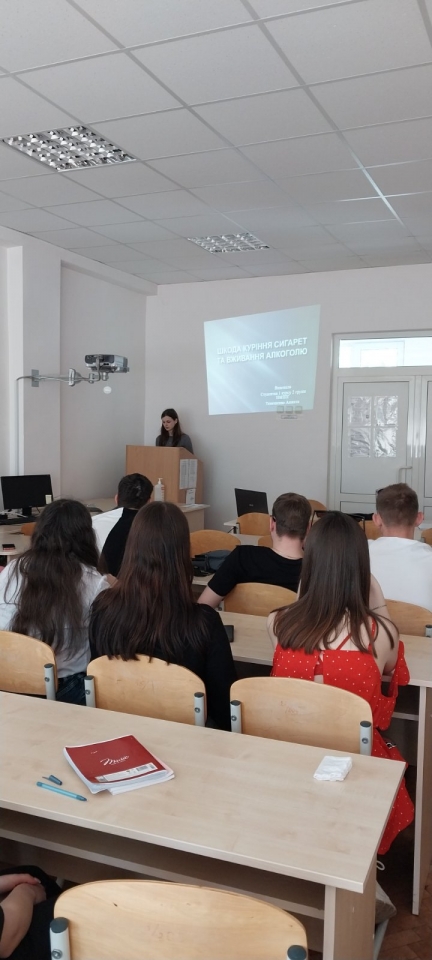 Паління – велике лихо. Доведено, що паління тютюну призводить до виникнення різних захворювань, які призводять до передчасної смерті людей. Кожні чотири хвилини у США помирає людина, смерть якої зумовлено тютюнопалінням. Курець живе на 6-8 років менше, ніж його ровесник, який не палить. Причина одна: паління – надзвичайне лихо і велика небезпека для здоров’я. Особливу увагу зараз викликає використання так званих «вейпів», які мають не аби яку популярність у молодого покоління. Викрадач розуму – так називають алкоголь з давніх часів. про властивості спиртних напоїв люди дізнались ще до нашої ери. з того часу, коли з’явився керамічний посуд і можливість виготовляти алкогольні напої з меду. соку плодів та дикого винограду. Термін алкоголь походить від арабського слова, що означає одурманюючий. першу пляшку алкоголю виготовив араб Рагез у 860 році, з того часу міцні алкогольні напої швидко розповсюджувались по всіх країнах світу. Цим актуальним проблемам і була присвячена кураторська година наставника студентів 2 групи 1 курсуОС «Бакалавр» Руслани Уманець. Заступниця старости групи Тимошенко Анжела підготувала цікаву доповідь і презентація з страшними світлинами наслідків зловживання алкоголю та тютюнопаління. Виступ викликав жваві дебати серед одногрупників. Студенти активно ділились власним досвідом і обмінювались порадами.