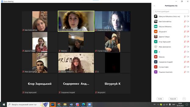 18 жовтня 2022 відбулася чергова онлайн зустріч куратора 5 групи першого курсу Катерини Алексеєвої зі студентами. Більшість студентів підключилися до конференції та прослухали інформацію, яку надавала куратор.