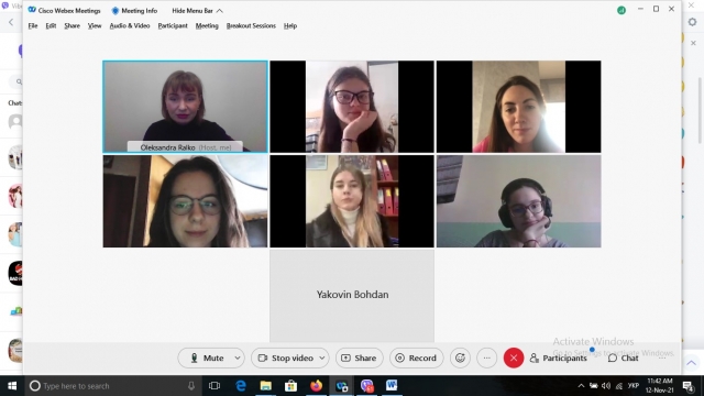 12 листопада 2021 року відбулася он-лайн зустріч студентів 3 курсу 5 групи з наставником доцентом кафедри адміністративного менеджменту та зовнішньоекономічної діяльності Ралко Олександрою Сергіївною. Зустріч було проведено за допомогою платформи Webex.