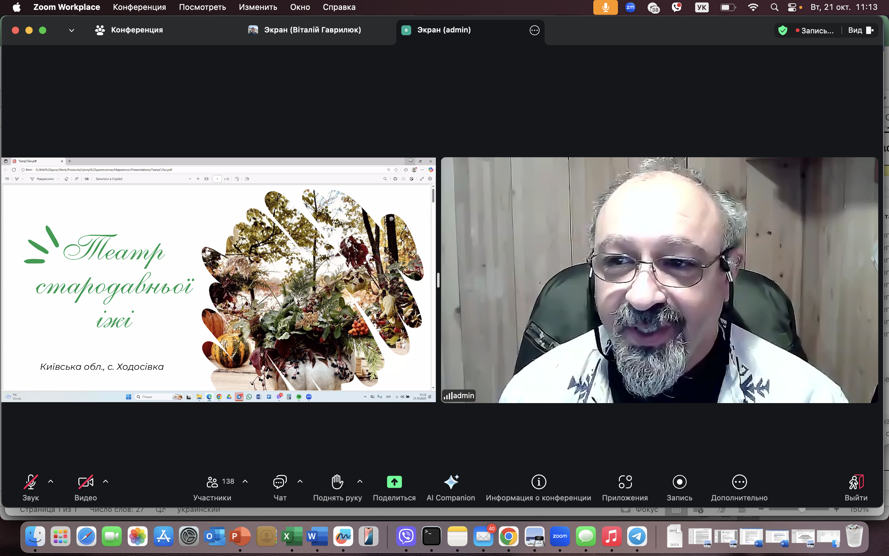 Окрему зацікавленість присутніх викликала доповідь українського підприємця, представника малого та середнього аграрного бізнесу Арама САРГСЯНА «Історія та традиції українців: театр стародавньої їжі». Цей виступ блискуче поєднав культурну спадщину з економічним потенціалом, розкривши механізми відтворення гастрономічної традиції як чинника інклюзивного розвитку регіонів. Арам САРГСЯН продемонстрував, як історична реконструкція автентичних харчових практик може слугувати основою для креативних індустрій, підвищення туристичної привабливості та формування унікального соціокультурного капіталу. Доповідач підкреслив важливість наукового підходу до збереження та популяризації національної кухні як невід'ємної складової української ідентичності та вагомого економічного ресурсу. На завершення виступу доповідач запросив усіх присутніх поринути у світ гастрономічної спадщини, відвідавши його унікальний культурно-економічний проєкт – Театр Стародавньої Їжі.