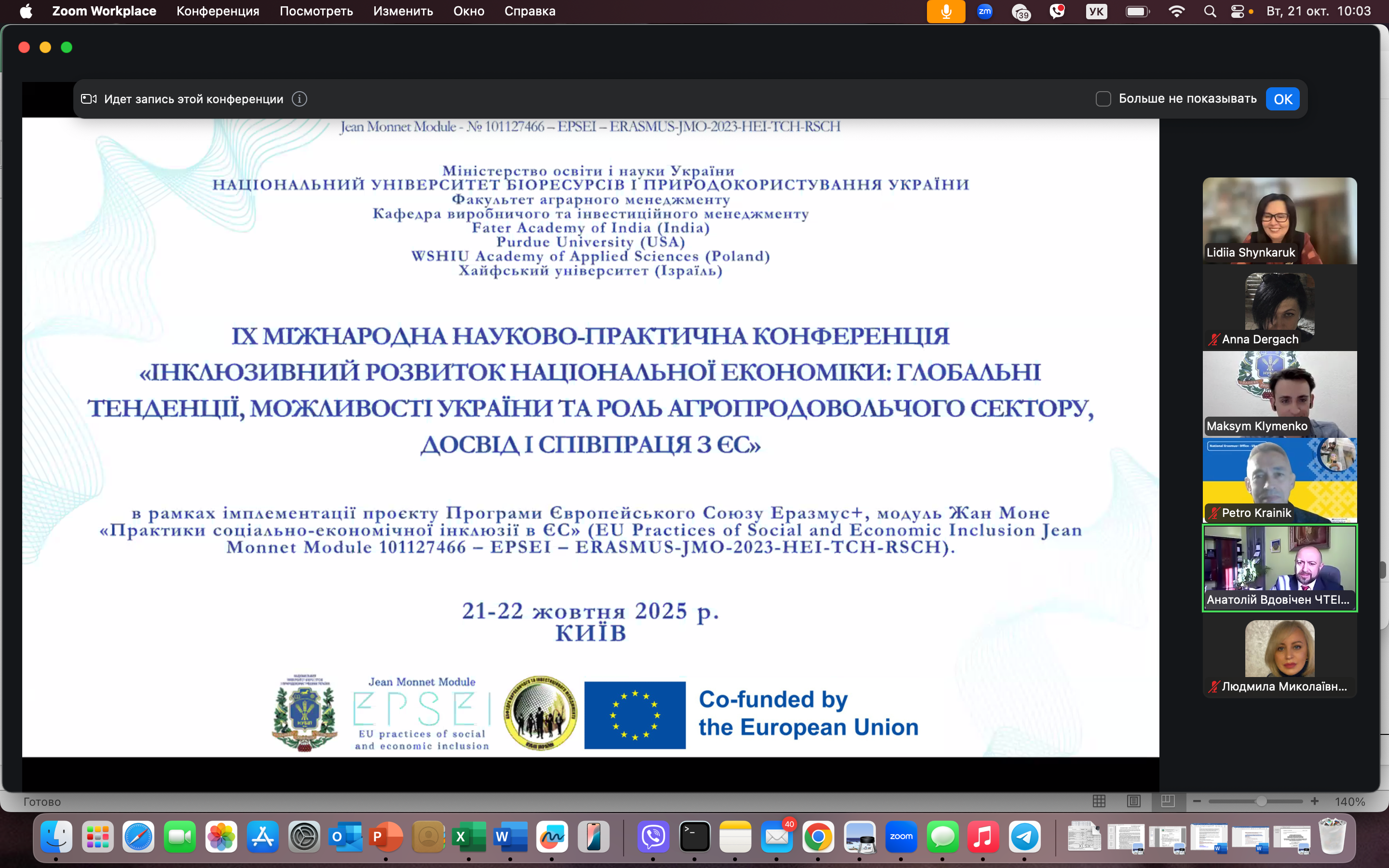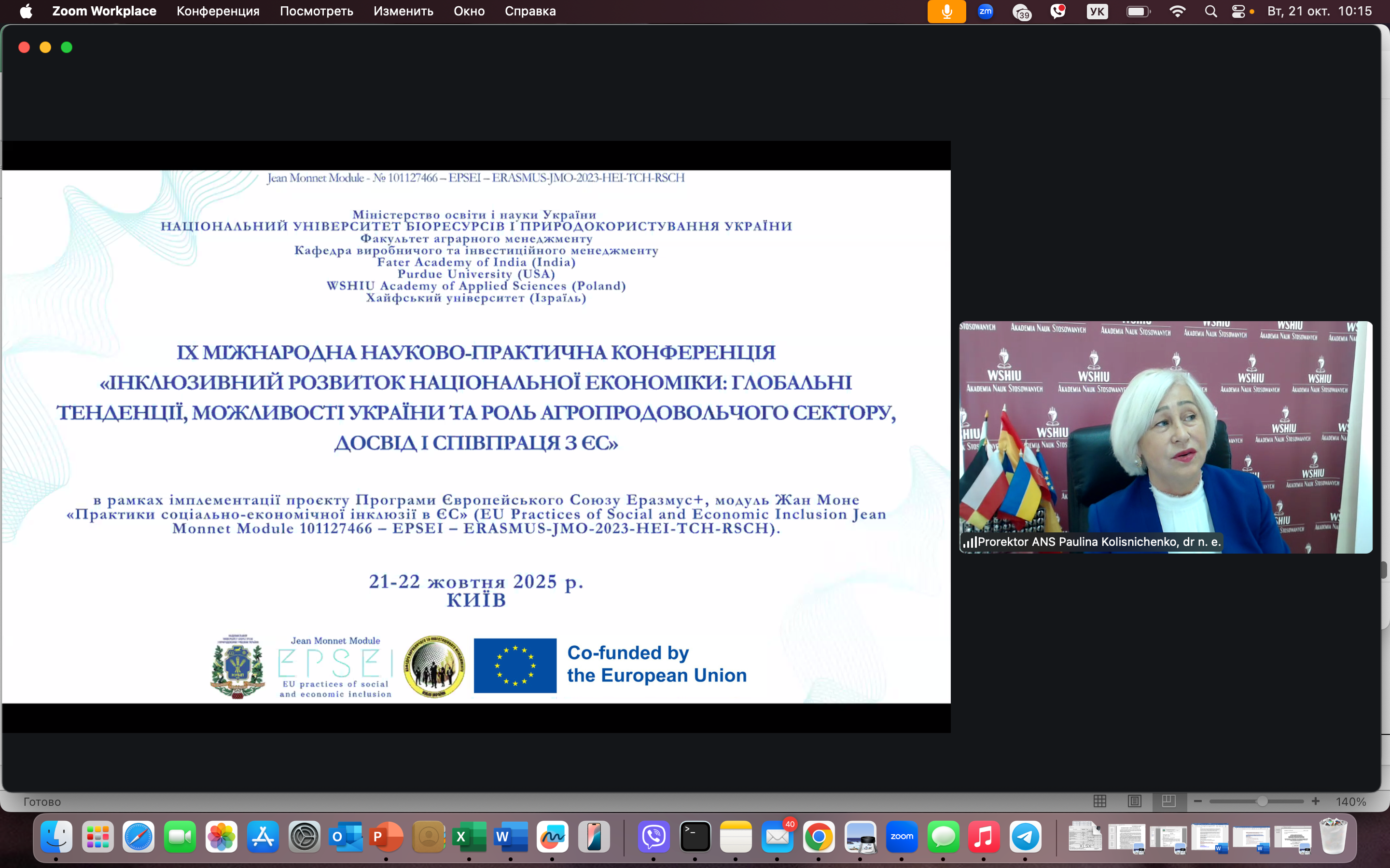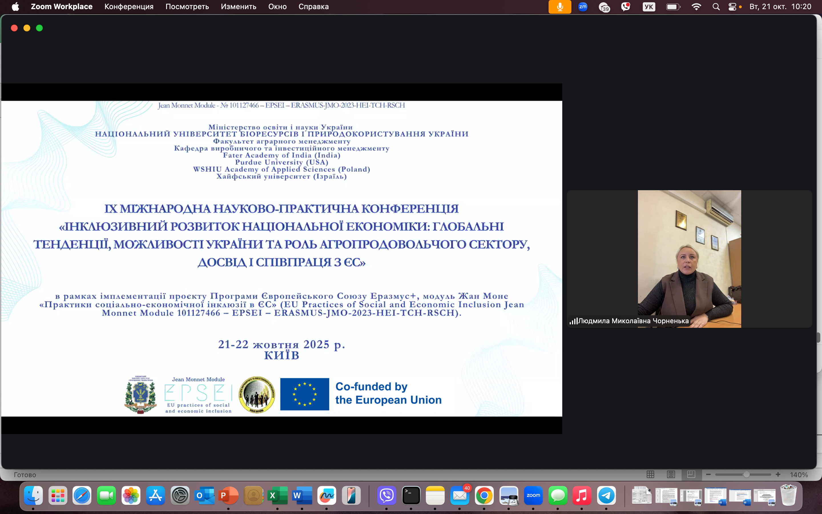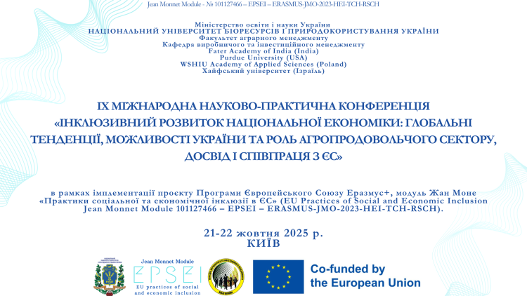 21-22 жовтня 2025 року в Національному університеті біоресурсів і природокористування України відбувся масштабний захід – кафедрою виробничого та інвестиційного менеджменту була проведена IХ Міжнародна науково-практична конференція «Інклюзивний розвиток національної економіки: глобальні тенденції, можливості України та роль агропродовольчого сектору, досвід і співпраця з ЄС». Дана конференція уже стала традиційним майданчиком для щорічної зустрічі освітян, науковців та бізнесменів-практиків з різних країн світу з метою напрацювання інклюзивних підходів до економічного розвитку України.
