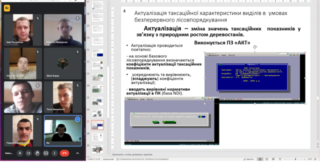 На лекційному занятті з дисципліни «Лісовпорядкування» були розглянуті основні складові матеріально-технічного та програмного забезпечення, які використовуються в процесі лісовпорядкування. Учасники лекції дізналися про використання сучасних технологій, які застосовуються при виконанні лісовпорядних робіт та проблеми з якими зіштовхуються спеціалісти ВО «Укрдержліспроєкт» при виконанні лісовпорядних робіт.