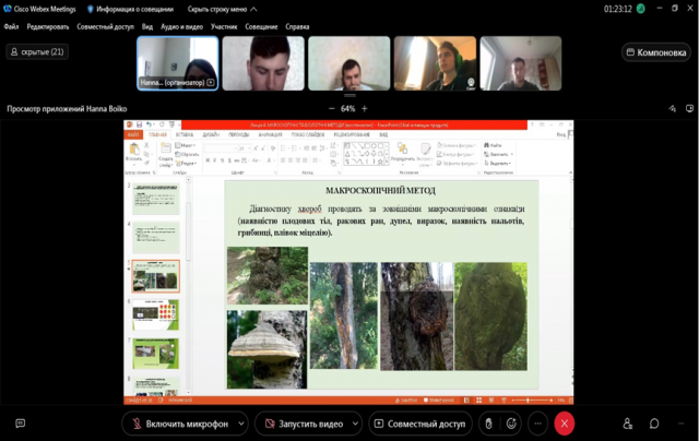 10 квітня 2023 року відбулася відкрита лекція доцента кафедри лісівництва Ганни Бойко з дисципліни «Діагностика хвороб лісу» для студентів ОС «Магістр» спеціальності 205 «Лісове господарство» на тему «Мікроскопічний та біологічний методи діагностики хвороб деревних рослин».