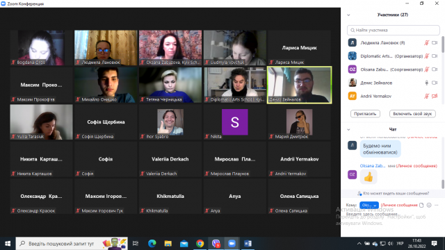 Започаткована у вересні 2022 р. за підтримки завідувача кафедри міжнародних відносин і суспільних наук професора Олександра Шевчука співпраця викладацького та студентського складу із Київською школою дипломатичних мистецтв набирає систематичного характеру. Зокрема, студентство активно долучилося до реалізації циклу творчих завдань симулятивного характеру. Періодичні зустрічі, змодельовані як засідання комісії Міністерства закордонних справ, дозволяли студентам відчути себе фахівцями обраної спеціальності та представити «керівництву» власне розроблені аналітичні записки.