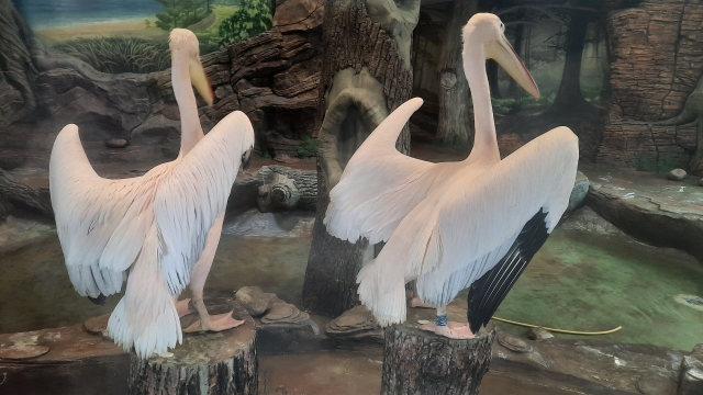 Періодично змінюють своє помешкання у зоопарку залежно від сезону року птахи видів Пелікан рожевий і Пелікан кучерявий. Це перелітні птахи, що мешкають у південній частині Європи, на берегах Чорного моря, в заростях річок. Пелікани живуть великими зграями, які можуть налічувати від 5 до 10 тисяч птахів. Будь-яка ієрархія в зграї відсутня, проте життя у такій численній компанії забезпечує птахам безпеку.