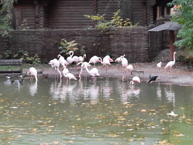 У зоопарку влітку фламінго можна побачити на ставку, а вже з осіннім похолоданням птахів розміщують у зимовому приміщенні.