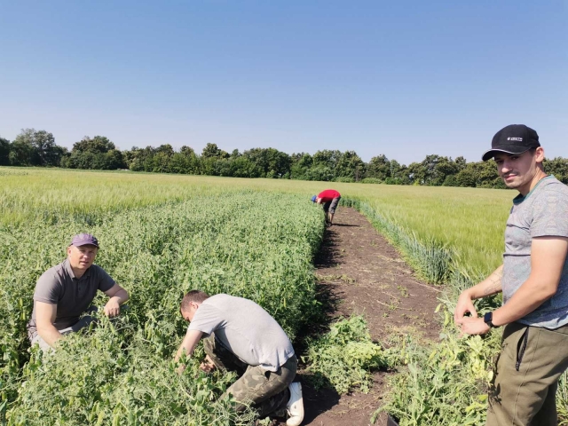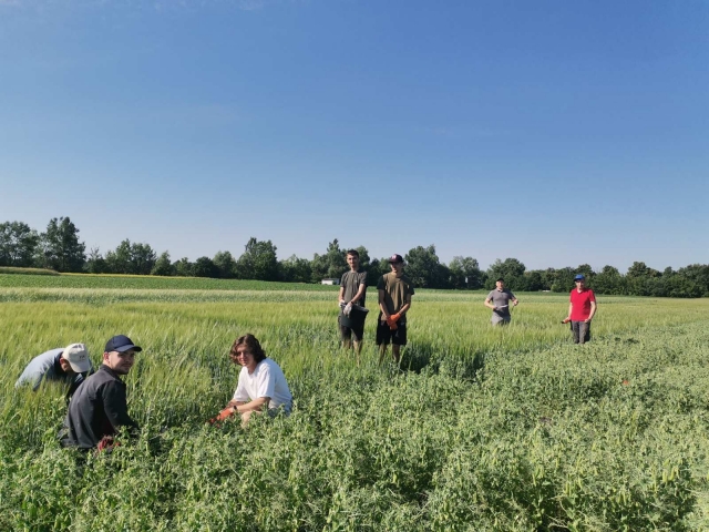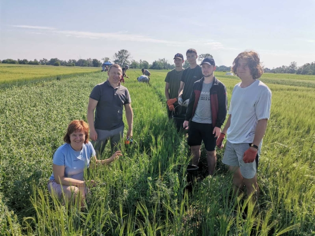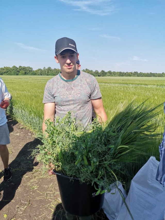 Ось воно яке – літо золоте…Марія Ясакова Спекотне літо за вікном, блакитне небо час від часу хвилює то білими, то сірими хмарками в надії на теплий дощ, а на дослідному полі міжнародного проекту Ecotwins вже виколосився ячмінь, а горох радує масою зелених бобів – майбутнім урожаєм. Минулого року команда агробіологічного факультету Національного університету біоресурсів і природокористування України розпочала виконання проекту HORIZON EUROPE, ECOTWINS «Розвиток дослідницького потенціалу та підвищення кваліфікації і навичок групи дослідників НУБіП України з агроекологічної інтенсифікації галузі рослинництва». Польові дослідження розпочали навесні 2023 року, тому вже маємо перші результати. Як це відбувалося можна простежити на сторінці проектуhttps://ecotwins.eu/uk/ або за короткими звітами на сторінці факультету: https://nubip.edu.ua/node/4179/35 В другій декаді червня в черговому етапі проведення досліджень були залучені студенти 2-го курсу агробіологічного факультету, які з радістю допомагали та задавали безліч питань. Цілковитою новинкою для їх були сумісні посіви ячменю та гороху. Окремі студенти не змогли не подискутувати з виконавцями проекту Ecotwins на тему різниці вегетативної маси та майбутньої урожайності між варіантами досліду, на яких внесені різні біостимулятори. Не оминули майбутні спеціалісти і теми впливу таких органічних добрив на родючість грунту.