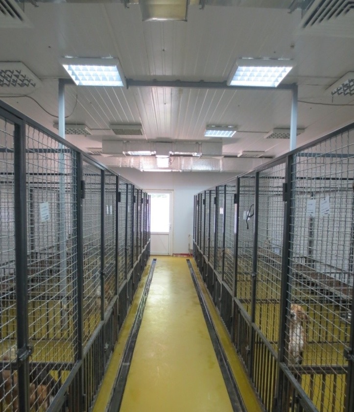 Для випробування ветеринарних засобів на собаках в лабораторії використовуються лабораторні собаки породи Бігль, які утримуються у вольєрах з наданням моціону на вигульних майданчиках.