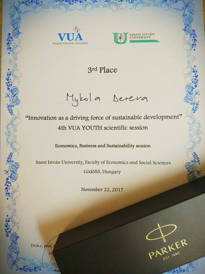 Магістр спеціальності "Менеджмент зовнішньоекономічної діяльності" Микола Дерева серед призерів Міжнародної конференції Вишеградської Асоціації Університетів