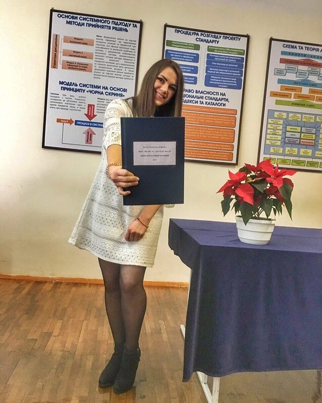 - П’ятецька Вікторія Олегівна «Розроблення стандарту гармонізованого з міжнародним ДСТУ ISO/TS 22002-1:ХХХХ та обґрунтування доцільності впровадження»;