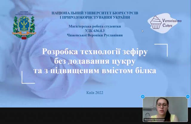 Голова екзаменаційної комісії, доцент кафедри стандартизації та сертифікації сільськогосподарської продукції Ольга Прядко відзначила високий рівень підготовки магістрів та побажала подальших успіхів у науковій роботі.