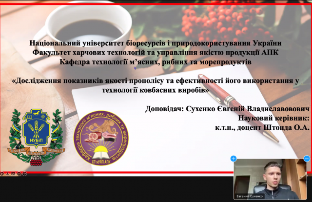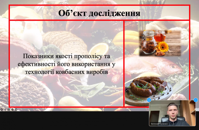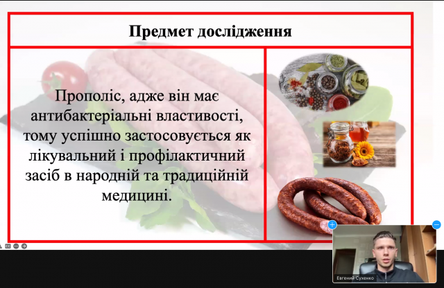1. Дослідження показників якості прополісу та ефективності його використання у технології ковбасних виробів (Сухенко Є.В.).