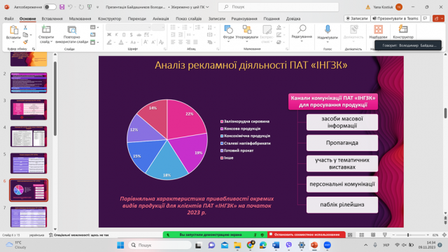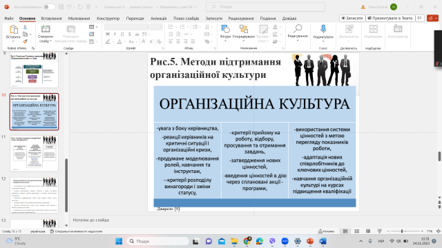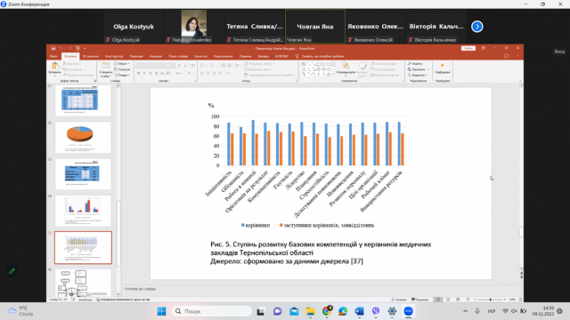 Результати досліджень представили також студенти освітньої траєкторії «Адміністративний менеджмент». Вони висвітлювали питання управління конкурентоспроможністю підприємства, вирішення конфліктів у бізнес-середовищі, презентували стратегії розвитку організаційної культури компанії та управлінського потенціалу її керівника.