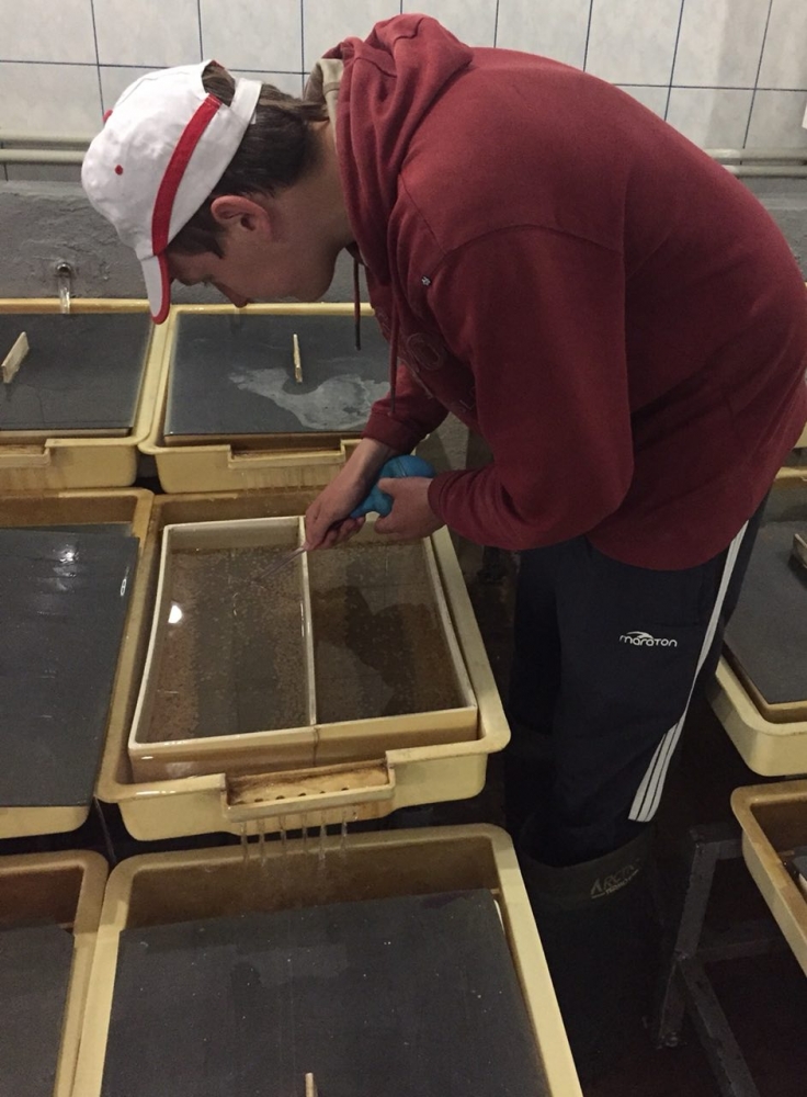 Фото 6. Догляд за ікрою райдужної форелі та личинкою дунайського лосося