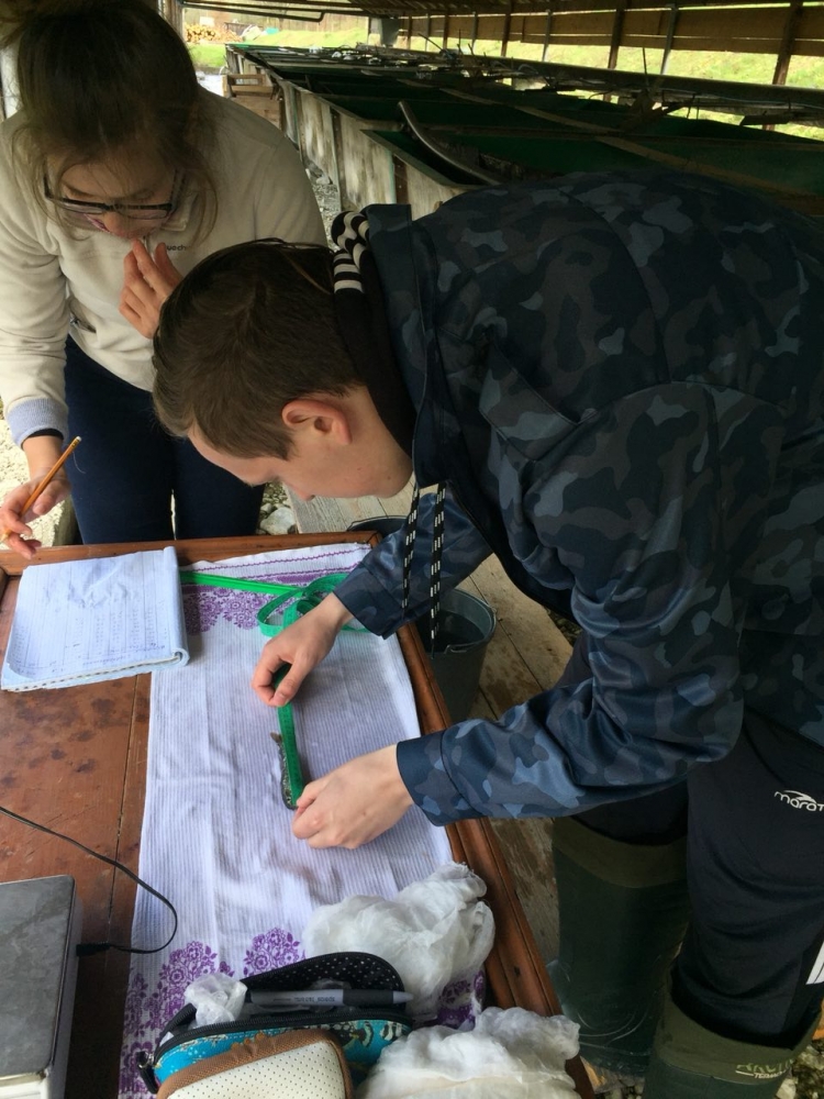 Фото 7. Вимірювання молоді, призначеної для випуску в природні водойми